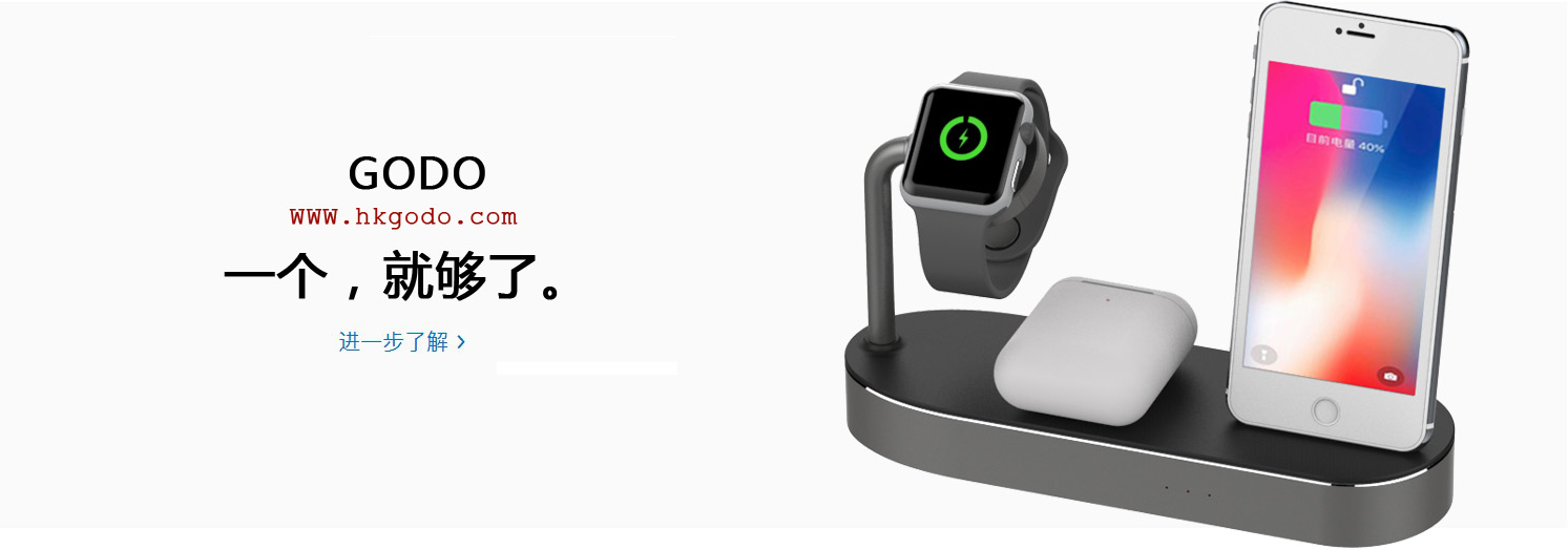 由此可見,蘋果手表有著不可預估的價值,它的問世也得到了大眾肯定,其前景無限廣闊。隨著蘋果智能可穿戴設備的需求增長,也將帶動其周邊配件系列產品的需求。GODO最新推出一款三合一蘋果產品充電底座。設計上簡約大方、高端優雅,功能上同時可供蘋果手機、手表、耳機充電,支持快充和無線充;產品通過MFI認證, 為消費者提供更可信的保障.